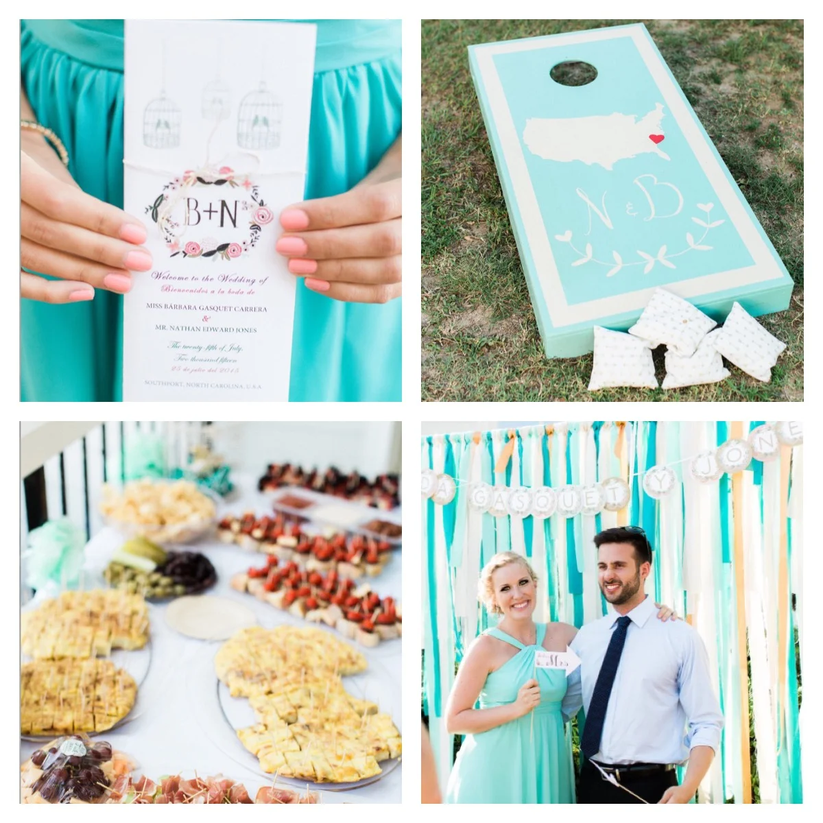 4. For the actual wedding date my husband and I bought unfinished cornhole boards and we designed and painted them (one had the US map with a heart in NC; the other was the Spain map with a heart in my city (Valencia).