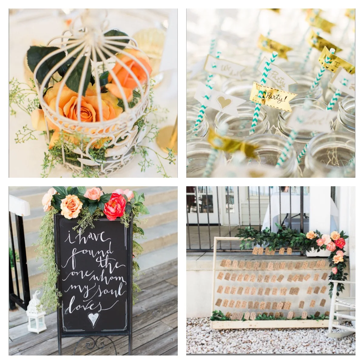 14. We used mason jars for the cocktail hour drinks. I bought color-themed straws and straw flags and I wrote in each one of them cute little messages (yay! / They did! / Fiesta / etc.)