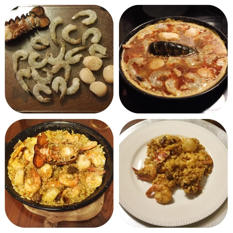 Although we are not professional chefs, the meal couldn't have turned out better!!! We included, shrimp, scallops and lobster tail in our Paella as well as Spanish tomato bread as a side. And last but not least Key lime cake adorned with the same wedding cake toppers we used on our wedding day (the flavor of the cake paid homage to the state where we first met, Florida!). Here are a few pics of the yummy meal and cooking process. And if you are feeling adventurous in the kitchen let me know as I would be happy to share the delicious recipe!