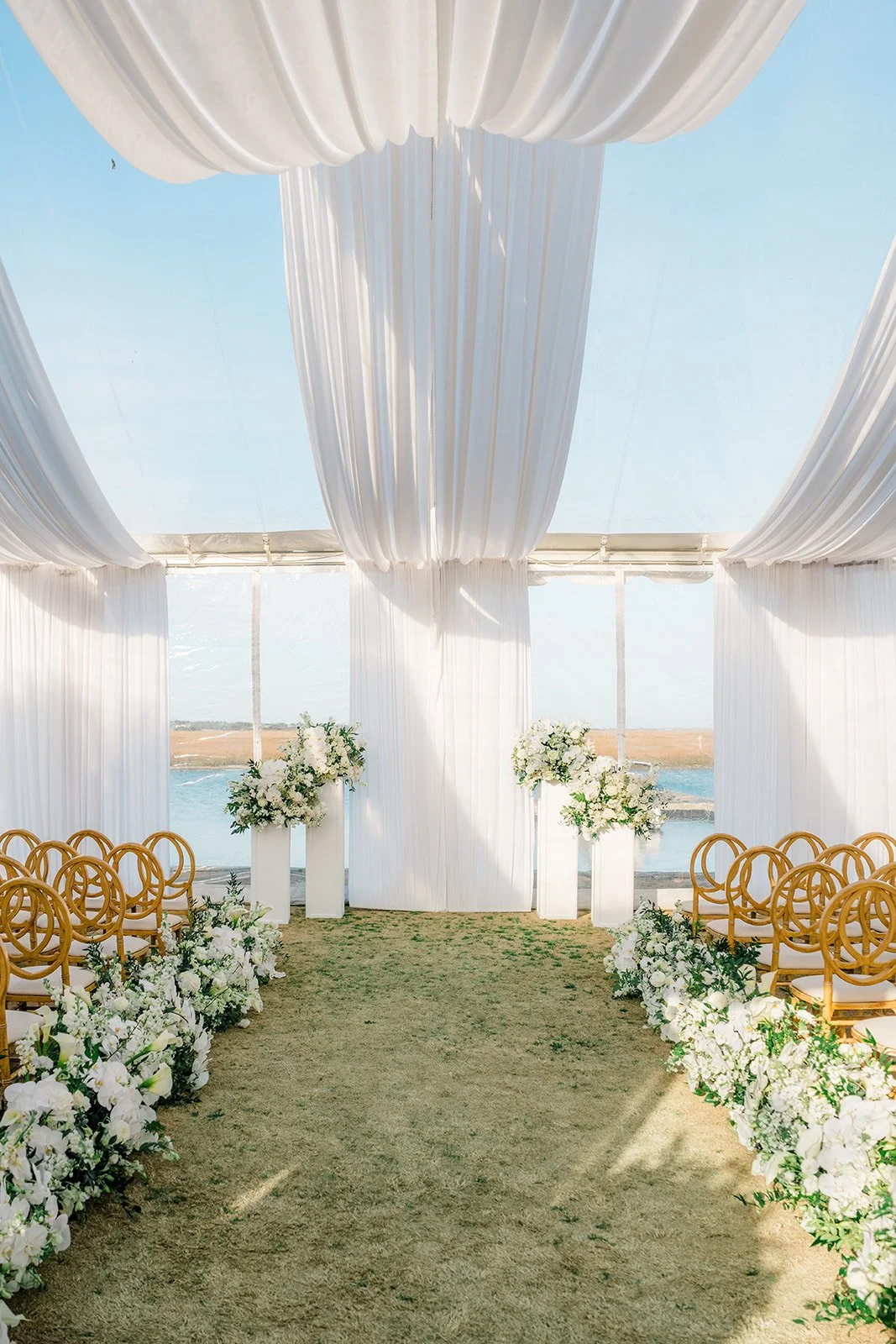 The result was a space that felt refined yet inviting, effortlessly luxurious and perfectly suited for a coastal wedding of this scale.